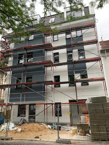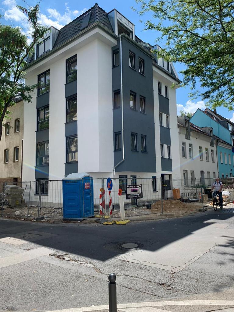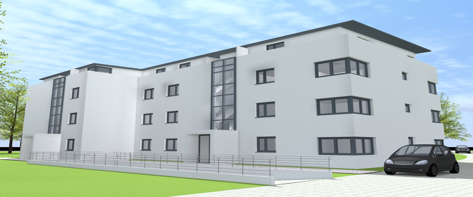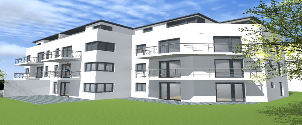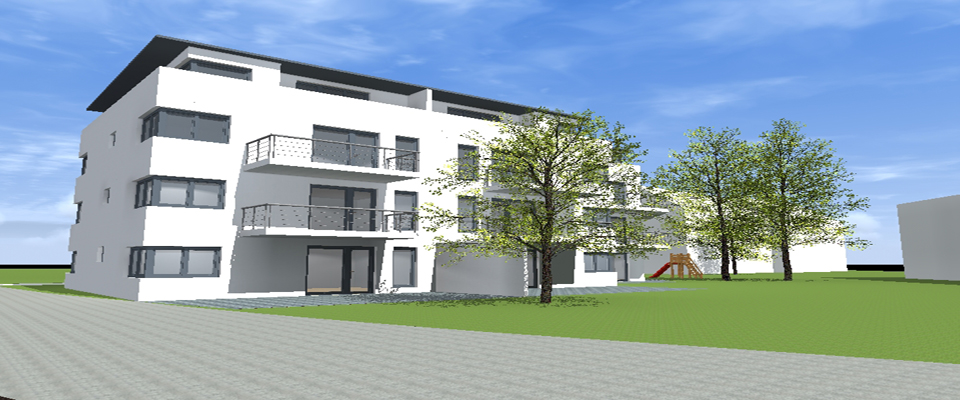 Auf dem Grundstück entsteht ein Wohngebäude mit 11 Wohneinheiten sowie ein Anbau an der Giebelseite, in dem weitere 2 Wohnungen entstehen werden.Das Gebäude wird in 5 ½ geschossiger Bauweise mit Satteldach erstellt. Die Außenwandflächen werden entsprechend den Vorgaben der EnEV gedämmt sowie verputzt und gestrichen. Das Wohnhaus wird voll unterkellert und mit einer Tiefgarage ausgestattet. Bei den Wohnungen wird es sich um 1, 3 und 4 Zimmerwohnungen handeln. Die Wohnflächen werden ca. 86 bis ca. 113 m² betragen. Die Wohnungen im Erdgeschoss werden über Terrassen und Gartenanteile (Sondernutzungsrecht) verfügen. Die Wohnungen ab dem 1. Obergeschoss erhalten Balkone. Die Terrassen und Balkone sind nach Südwesten ausgerichtet. Die 4-Zimmerwohnungen ab dem 2. Obergeschoss erhalten am Giebel einen zweiten Balkon, der nach Osten ausgerichtet ist. Die Wohnungen in dem Anbau werden als Maisonette-Wohnungen gestaltet. Die Wohnung im Erdgeschoss und Souterrain erhält einen eigenen Hauseingang und wird über eine Terrasse und einen Gartenanteil (Sondernutzung) verfügen. Die Wohnung im Ober- und Dachgeschoss erhält eine schöne Dachterrasse, die den Eindruck eines Penthouses vermittelt.